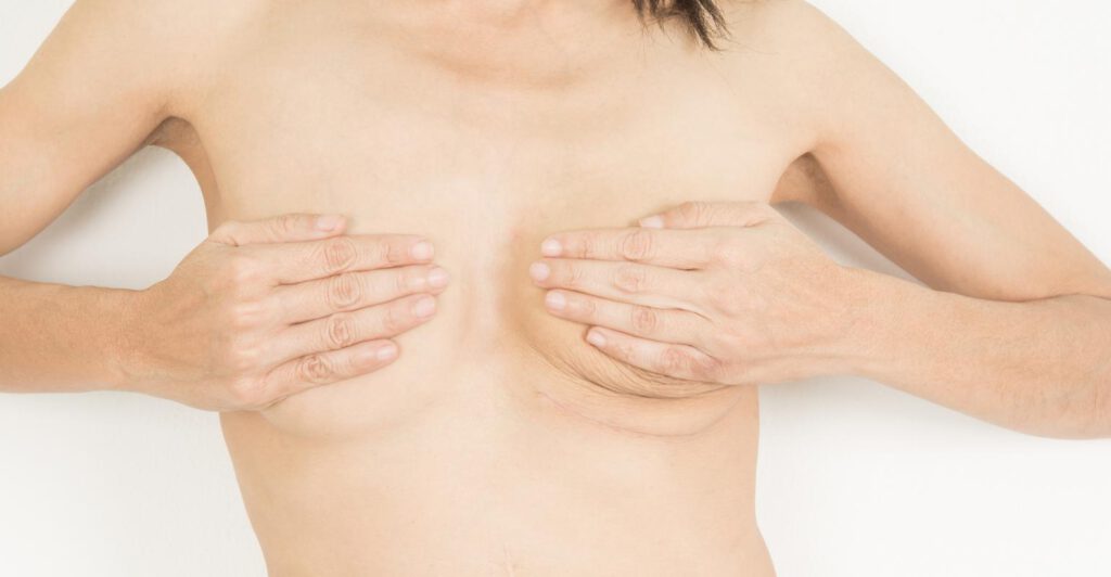 Dermatografie na kleurverlies rechts en verlies tepel links (necrose na borstverkleining) – Foto’s en video